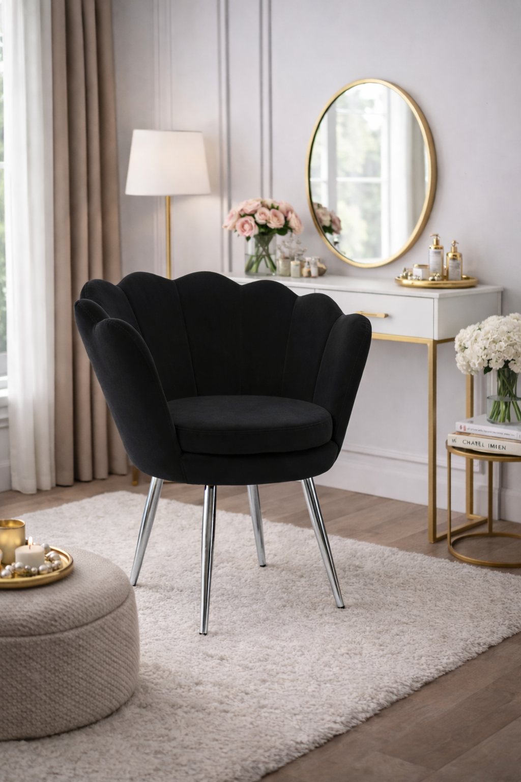 Krzesło welurowe Shell czarne na srebrnych nóżkach to elegancki mebel, który doda szyku i elegancji do Twojego wnętrza. Wykonane z wysokiej jakości materiałów, krzesło wyróżnia się nie tylko nowoczesnym wyglądem, ale także komfortem użytkowania. Klasyczny czarny kolor w połączeniu z efektownymi srebrnymi nóżkami sprawia, że jest to idealna propozycja dla osób poszukujących ciekawych połączeń kolorystycznych do swoich wnętrz.