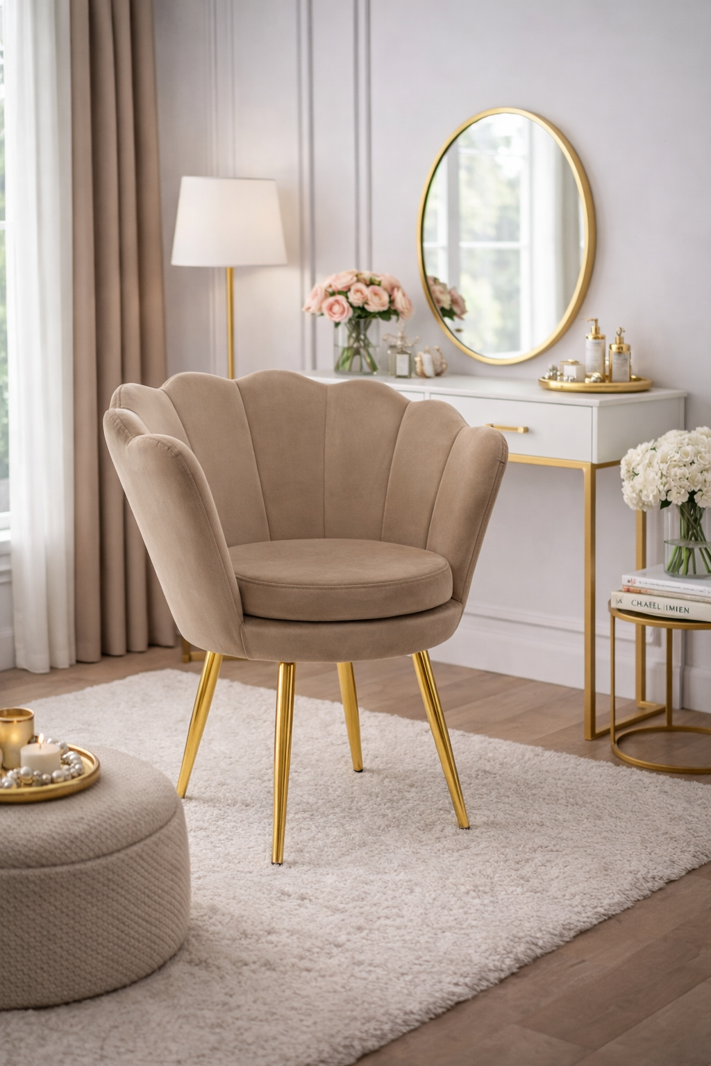 Krzesło SHELL Glamour Muszelka welurowe coffee złote nóżki