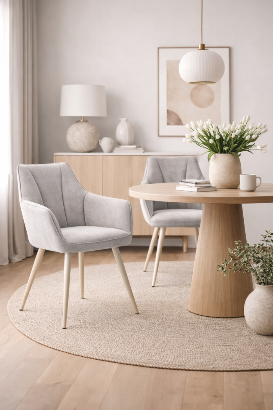 Krzesło tapicerowane ADELE II w kolorze szarym to idealne rozwiązanie dla osób, które szukają stylowego i funkcjonalnego mebla do jadalni lub salonu. Neutralna kolorystyka sprawia, że krzesło łatwo dopasować do różnych aranżacji – od nowoczesnych aż po klasyczne wnętrza.