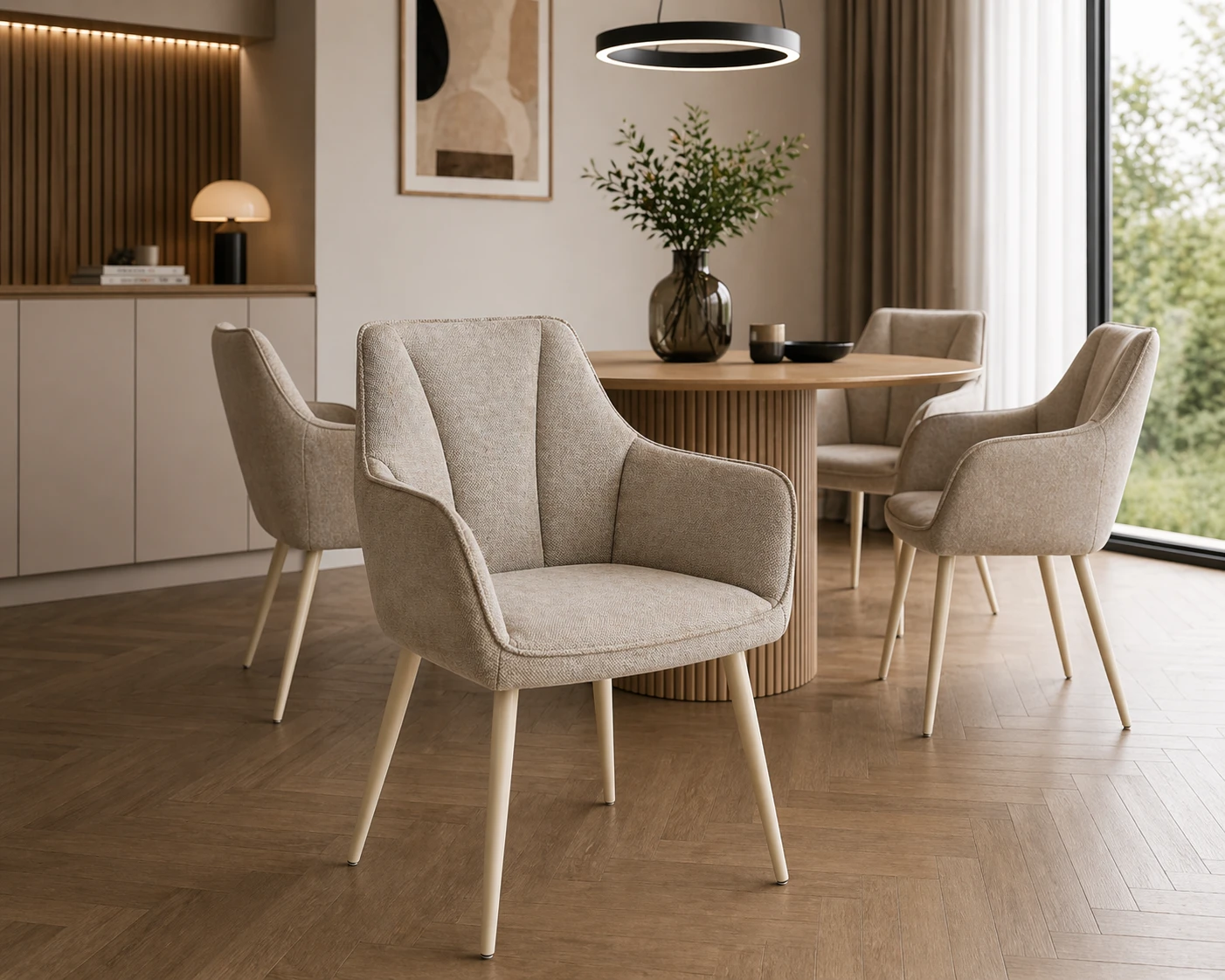 Krzesło ADELE II to propozycja dla klientów, którzy szukają balansu między estetyką a codzienną funkcjonalnością. Ciemnobeżowa tapicerka wprowadza do wnętrza ciepło i spokój, a jednocześnie jest na tyle uniwersalna, że łatwo dopasować ją do różnych aranżacji – od nowoczesnych po bardziej klasyczne.